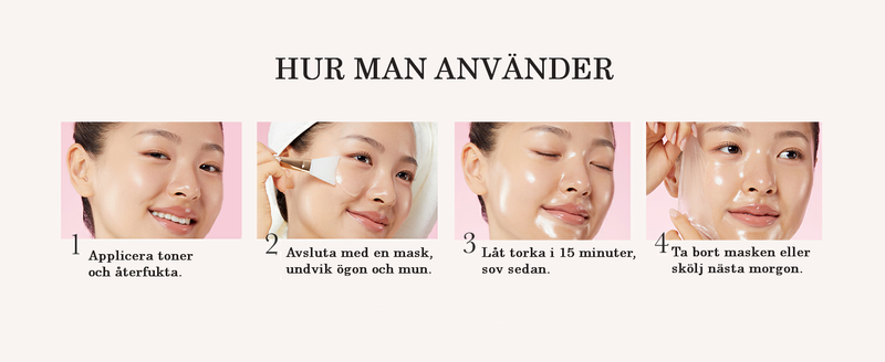 Prova masken i din kvällsrutin i upp till 30 dagar. Om du inte märker förbättrad elasticitet, mer återfuktad hud eller enklare morgonrutiner får du pengarna tillbaka. Vi vill att du ska känna dig trygg och se verkliga resultat i din hudvård.